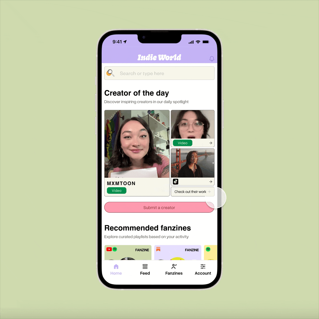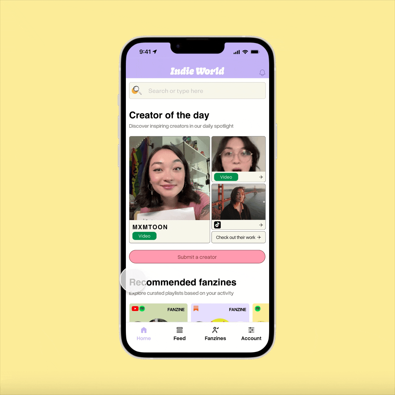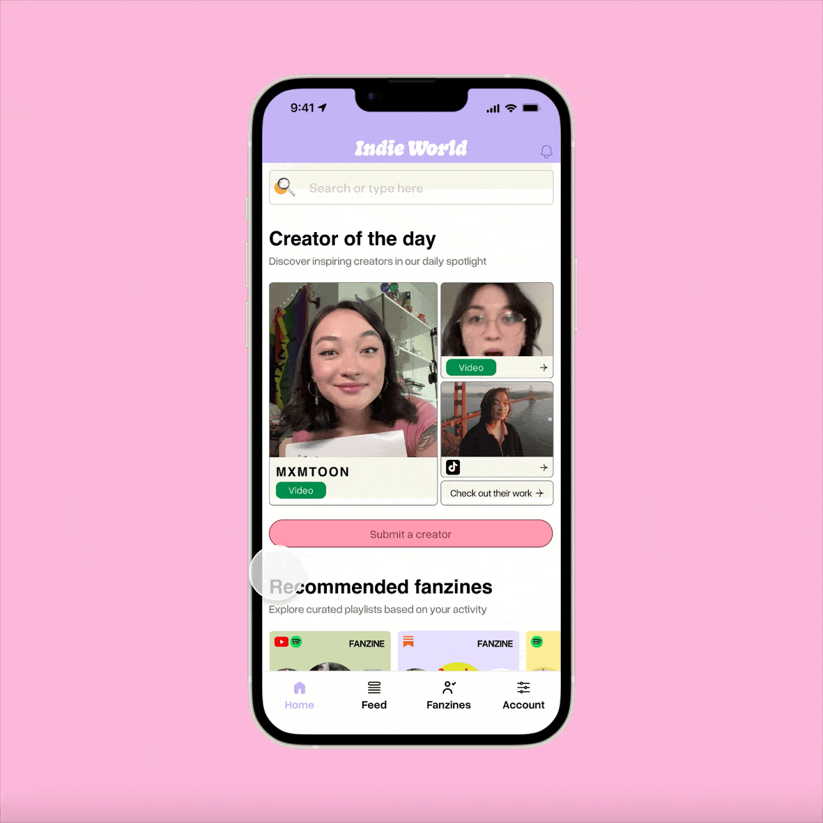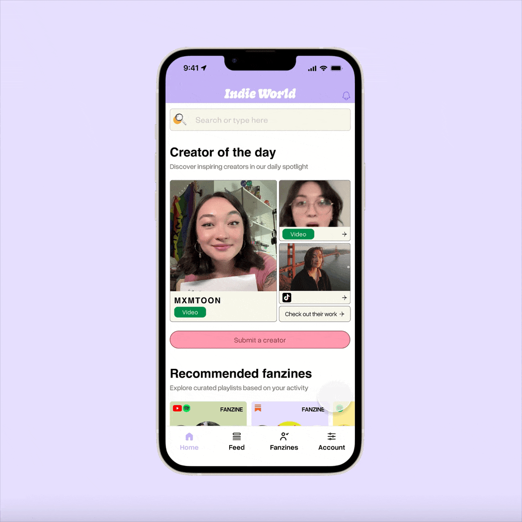 Indie World is a directory of independent creators across social media platforms, helping users discover and follow emerging talent in one centralized place. The app highlights a “Creator of the Day” to spotlight featured talent and encourage exploration. Users can also create personalized collections called Fanzines, allowing them to organize and curate their favorite creators for easy access and ongoing discovery.